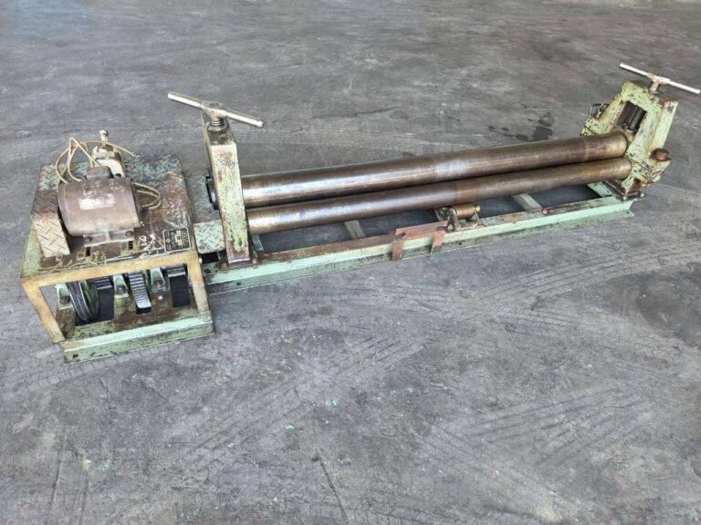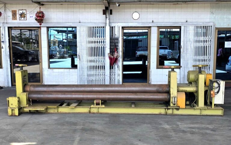 เครื่องม้วนเหล็กแผ่น 10ฟุต ขนาด 3 ลูกกลิ้ง Kyowa Model: 1331H รุ่น 3ตอน หน้ากว้าง 3100 ม้วนเหล็กหนาสูงสุด 13 มิล เพลาลูกกลิ้งบน 250 ลูกกลิ้งล่าง 200 มิล ออฟชั่น: ใช้เกียร์ทดหมุนนิ่ม เปิดเอางานออกสะดวก (ลงเบาขึ้นง่าย)