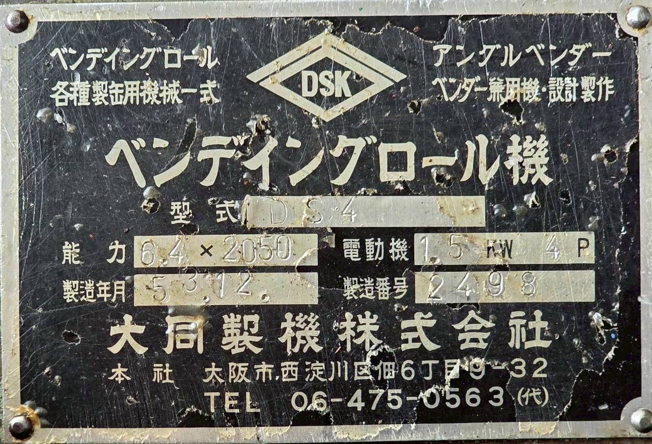 Daido (DSK) เครื่องม้วน 3 ลูกกลิ้งเพลาตัน 6ฟุต Capacity: 2050 x 6.4mm ขนาดลูกกลิ้งบน 150 ลูกกลิ้งล่าง 120 มิล