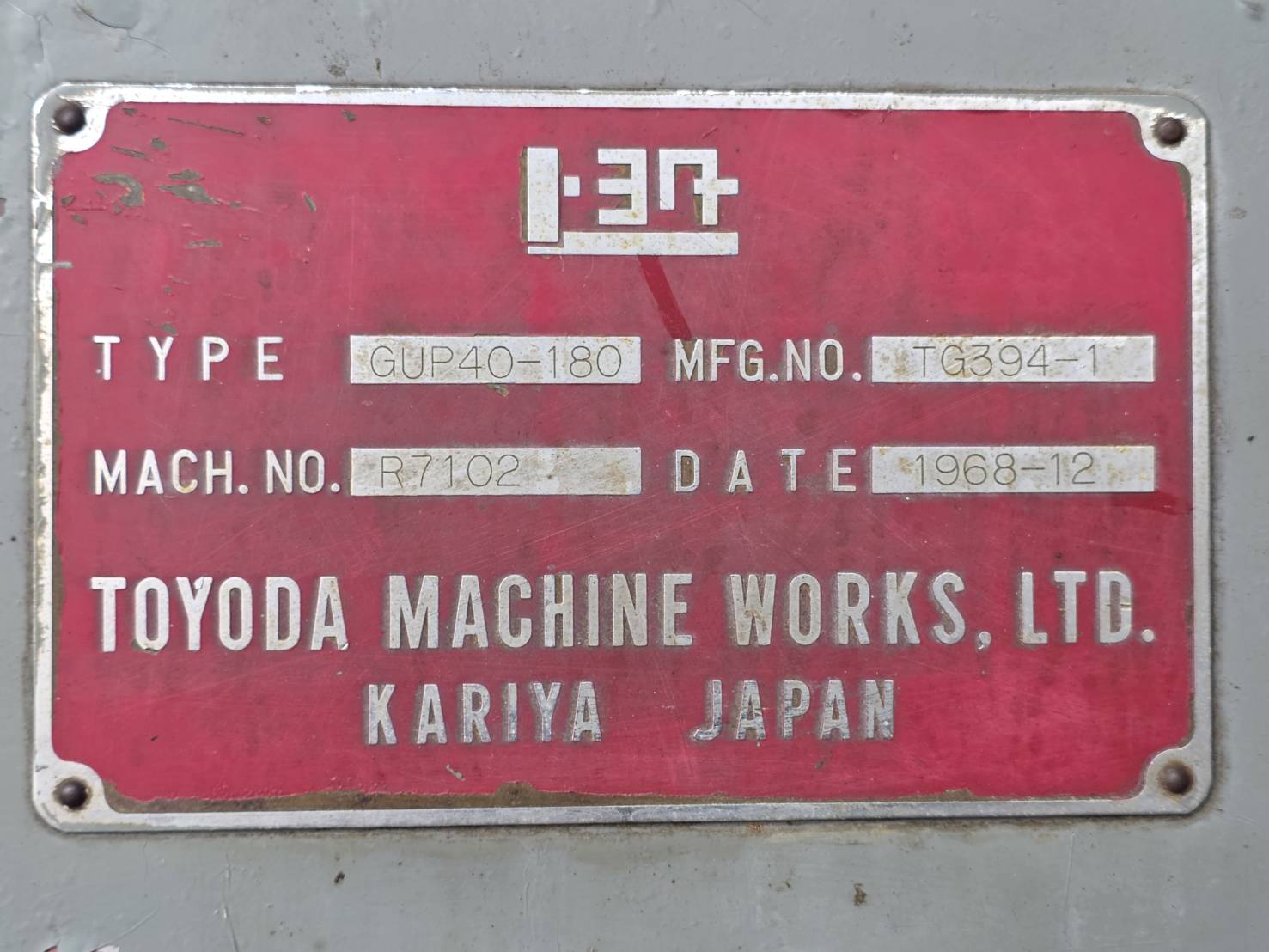 เครื่องเจียร์เพลากลม Toyoda Model: GUP40 x 180 Taper MT# 5 Dia.สวิง 500 เจียร์งานยาวสูงสุด 1800 มิล Max Load workpiece 500kg ปรับเอียงองศาได้ทุกจุด (โต๊ะ,หัวแท่น,หัวหินเจียร์)